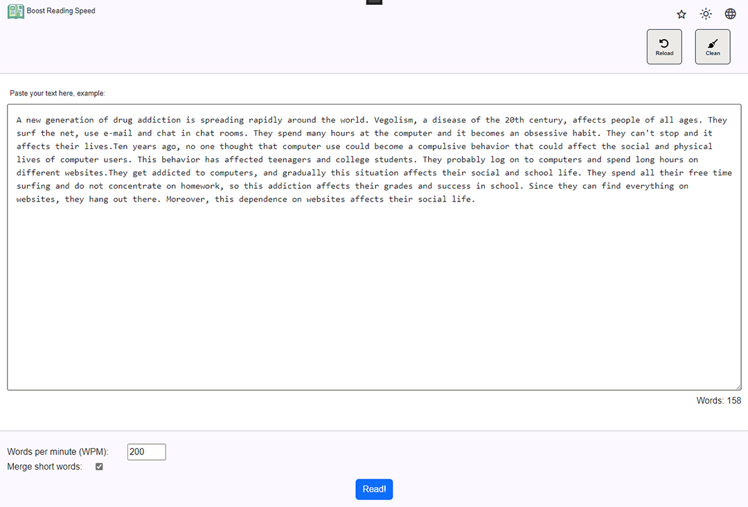 Simply paste the text you want to read. Set the words per minute. Start reading as our software flashes the words across the screen so you only have to focus on a few words at a time.